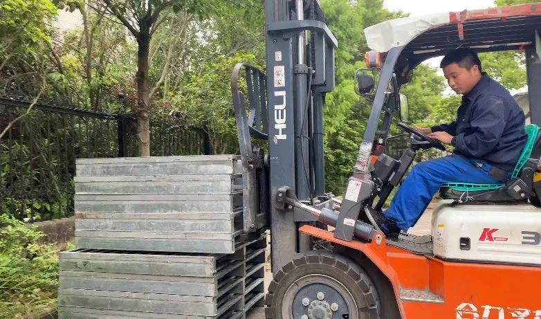 叉車比賽:參賽選手正在進行貨物運送