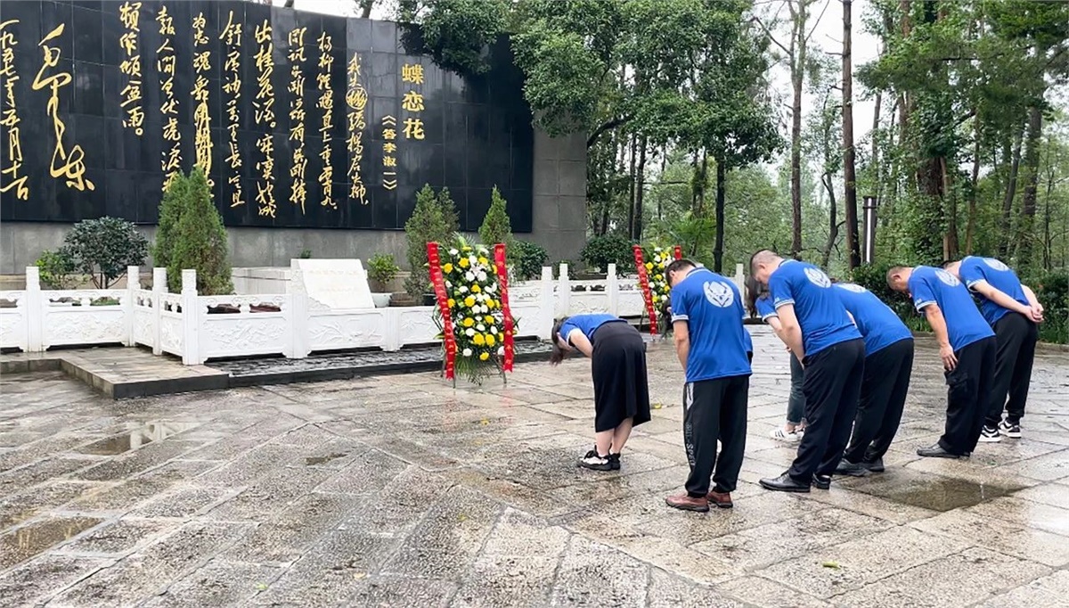 伴隨著綿綿細雨,懷著崇敬的心,大家從紀念館參觀學習后,走進楊開慧烈士陵園,全體黨員在楊開慧烈士墓前肅立、鞠躬,表達對“驕楊”的追思和敬仰。